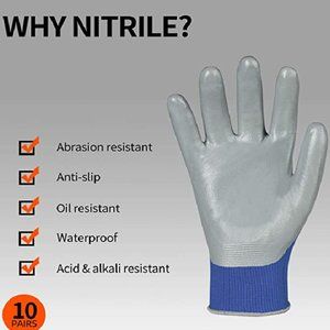 • MATERIAL - Highly flexible seamless polyester liner provides hands for maximum comfort. Durable nitrile-coated palm gives improved flexibility and a high-performance grip. Knit wrist secure fit & keeps hands free of dust and dirt