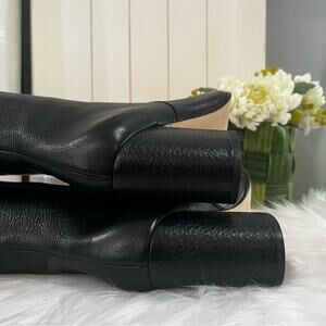 New in box Via Spiga 'Beline' Over The Knee OTK Almond Toe Chunky Heel Boots in Pebbled Calf Leather. Half zip and pull on entry. Black. 5.5 M / 35.5 EUR