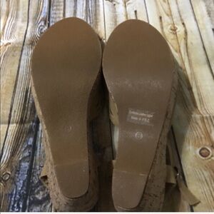 Via Veneto Women’s Beige camel laser cut cork Wedge Sandals Size 8 new without box. The heel height is 3”.