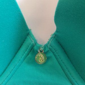 New, with tags, never worn, never washed classic underwire demi bra in turquoise. Shaping, lined cups with VS charm between them.
