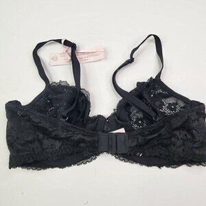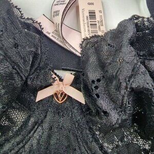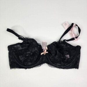 NEW Victoria Secret Unlined Demi Black Sheer Lace Pink Bow Size 32D