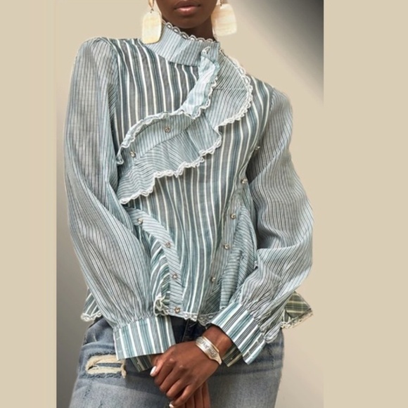 NEW Victorian Chic Button front Striped Ruffle Blouse sz L