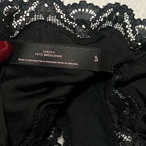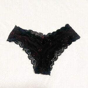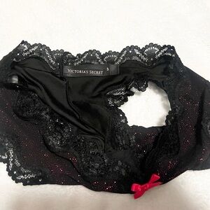 NEW Victoria’s Secret Cheeky Black Pink Bow Sparkly Lace Trim Panty Small RARE