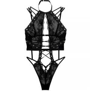 NEW Victoria’s Secret High-Neck Rose Lace & Grommet Strappy Teddy 4417