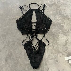 Gorgeous black strappy teddy bodysuit. New without tags!
