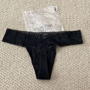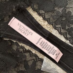 NEW Victoria’s Secret Lacy Hem Thong Panties Lingerie Black Medium NWT String