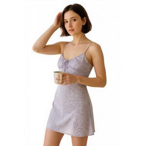 Ultra soft lavender with white flowers mini dress with tie at the front.
