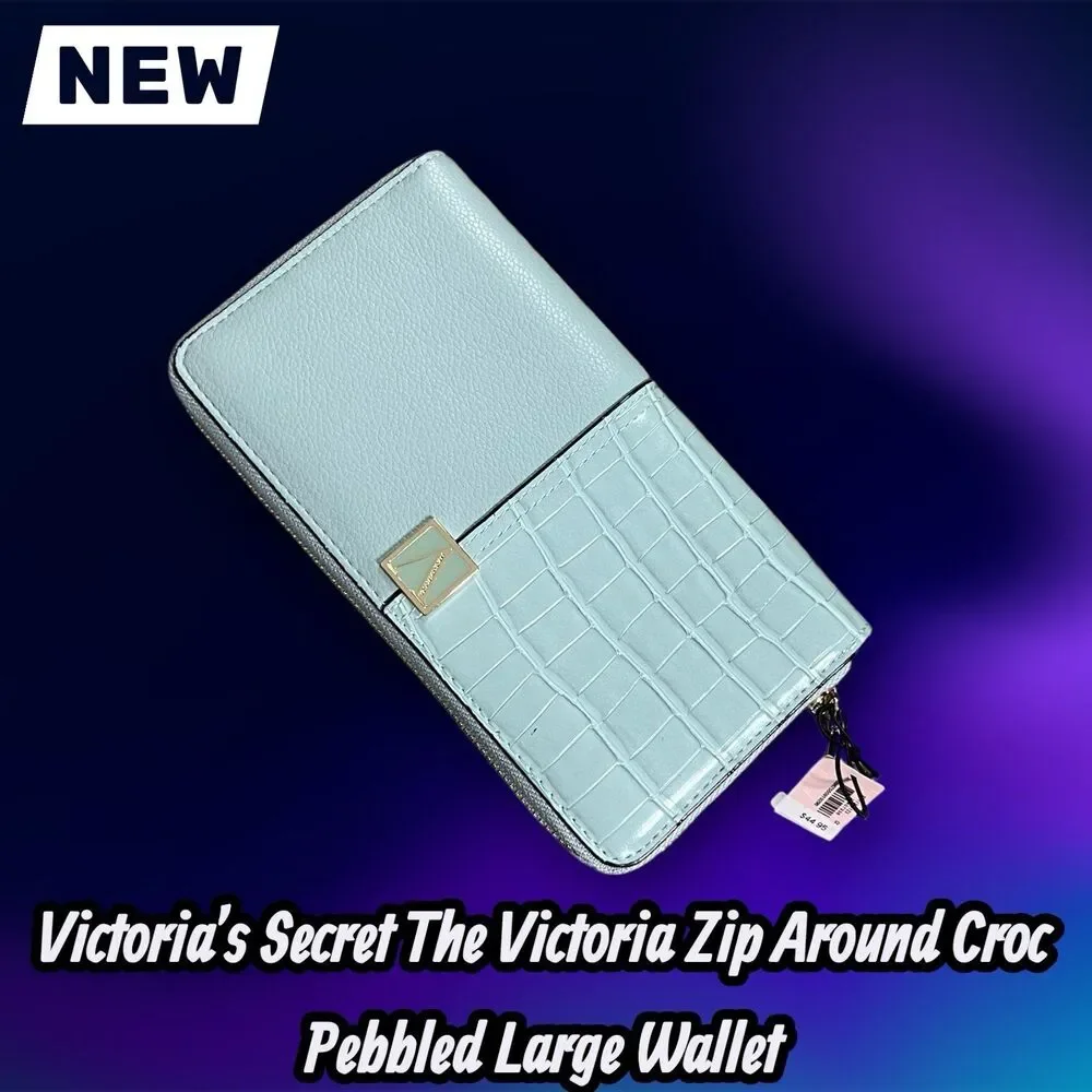 NEW Victoria’s Secret The Victoria Zip Around Croc Pebbled Large Wallet