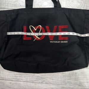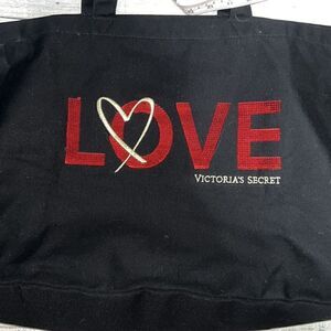 NEW Victoria’s Secret VS Love Tote Weekender Bag Black Canvas Red Sequins Heart
