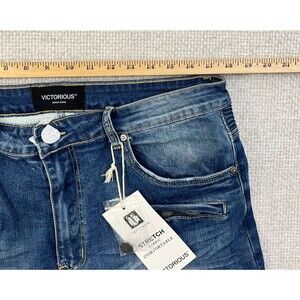 NEW Victorious Denim Jean Shorts Mens 36 Stretch Moto Blue Skater Hip Hop Grunge