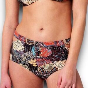 NEW Vigoss Bikini Bottoms Cutout High Rise Front Dark Blue Multicolor Size Small