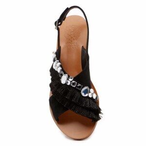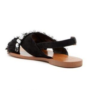 NEW Vince Camuto Ampella Crystal Embelished Fringe Sandal in Black Sz. 7