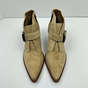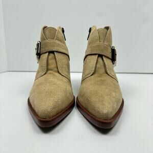 NEW Vince Camuto Ashena Tan Suede Leather Buckle Zip Up Bootie Ankle Boots