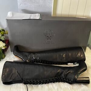NEW Vince Camuto Corset Calf Leather Laced Tolla Over The Knee Boots Black Sz 6