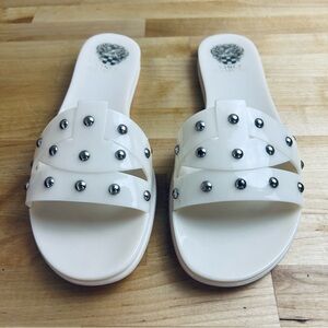 NEW Vince Camuto Emelon Creamy White Studded Jelly Slides Sandals Womens Size 10