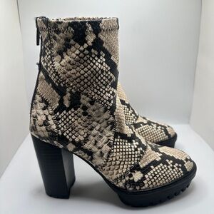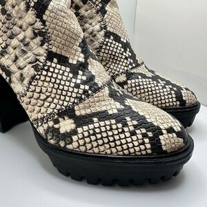 NEW Vince Camuto Erettie Black White Snake Print High Block Heel Booties 7.5M