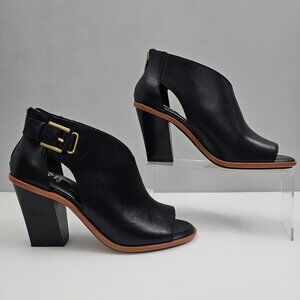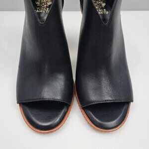 NEW Vince Camuto Fareena Ankle Bootie Women 10 Black Leather Peep Toe Block Heel