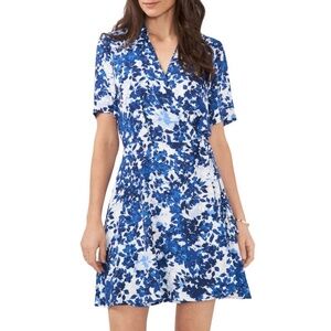 NEW Vince Camuto Floral Collared Wrap Dress in Opulent Blue Sz. XS