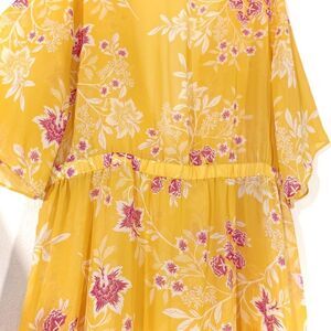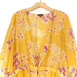 NEW Vince Camuto Floral Getaway Chiffon Duster Kimono Boho Yellow Plus Size 1X