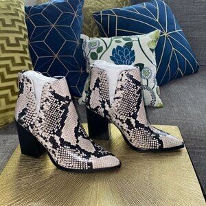 A pointed toe adds a western appeal to a versatile block heel bootie.