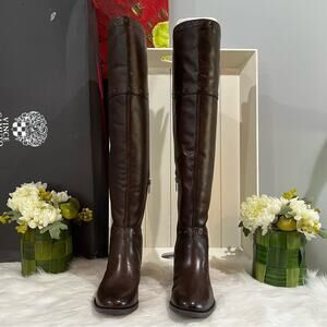 New in box Vince Camuto Bestan riding boots are tailored in sleek over-the-knee height with daring grommets all grounded on a sensibly chic 1.5” heel. Dark Chocolate Brown. Size 5.5 35.5.