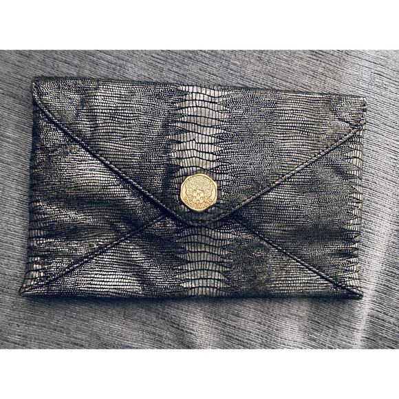 NEW Vince Camuto Gunmetal Leather Snake Embossed ( 6x9inch) Envelope Bag/ Snap