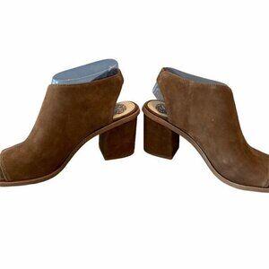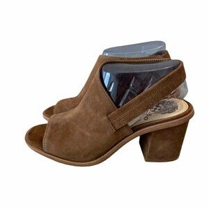 Vince Camuto Womens Kaisly Sandals Brown Leather Slingback Block Heels 7 M New