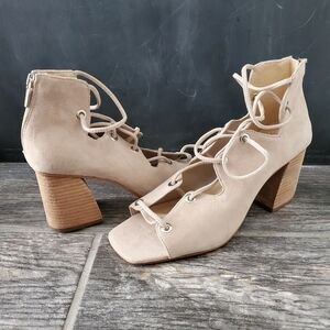 NEW Vince Camuto Nahara Beige Suede Lace-up Sandals Heels
