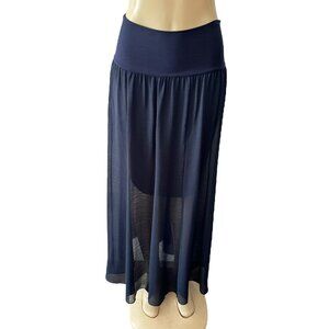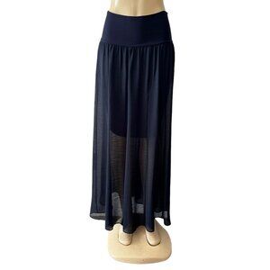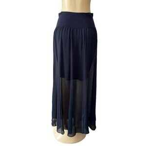 NEW Vince Camuto Navy Blue Sheer Chiffon Maxi Skirt Stretch Lined Roll Waist S