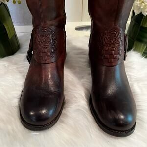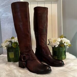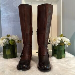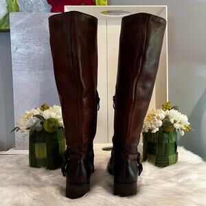 NEW Vince Camuto Oil Rubbed Leather Campus Riding Knee Boots Marble Antique Bro…