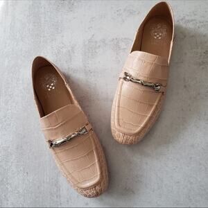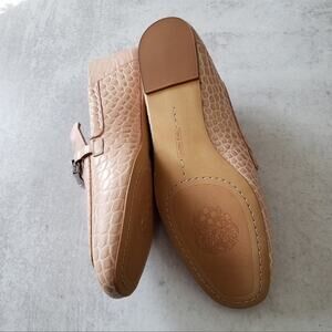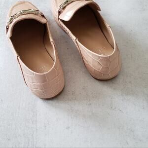 New with Box Vince Camuto Perenna Leather Croc Embossed Loafer. Blush a pink. silver accent. collapsible heel can be worn as a mule.