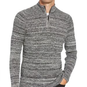 NEW Vince Camuto Quarter Zip Grey Black Sweater L