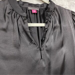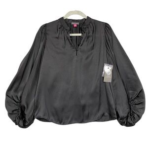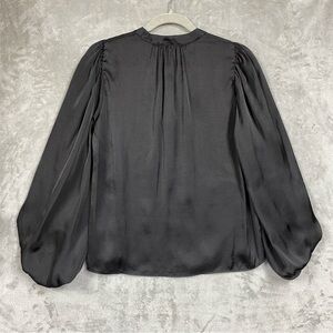 NEW Vince Camuto Satin Balloon Sleeve Peasant Blouse Size XS Black
