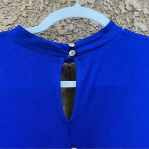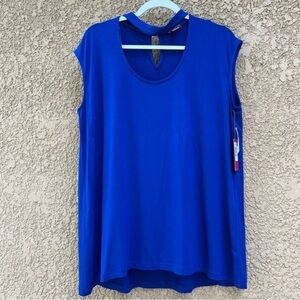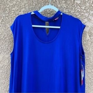 NEW! Vince Camuto Shirt Blouse Womens Size 1X Plus Sweatheart Keyhole Neck Blue