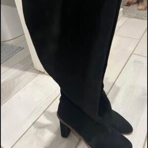 A sleek and stylish boot, the Vince Camuto Phranzie features an inside quarter zip for easy on and off, almond-toe silhouette, and tall island heel. Tall shaft dress boot with genuine leather upper. Lining: 77% microsuede, 23% synthetica. Cushioned synthetic insole. Durable rubber outsole. Imported.