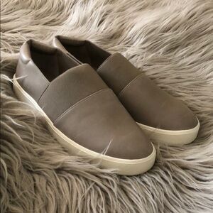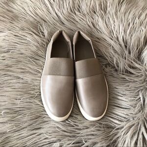 A smooth elastic vamp panel creates a subtly striped effect--and a perfect fit--for this sleek slip-on sneaker with a streamlined silhouette and snowy bumper sole. Sizing: True to size. M=medium width. - Round toe - Elastic vamp strap - Slip-on style - Lightly padded insole - Grip sole