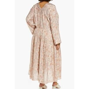 Vince Dahlia Print Midi Dress Lotus Shell Womens Plus Size 3X Beige Bell Sleeves