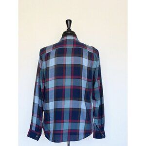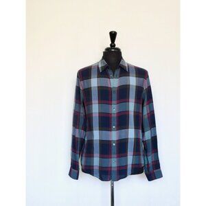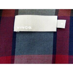 NEW! Vince Plaid Lightweight Button Front Shirt Navy Burgundy SZ M