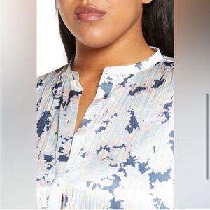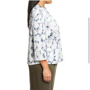NEW Vince Pleated Button Down Blouse Lotus Print Size 3X