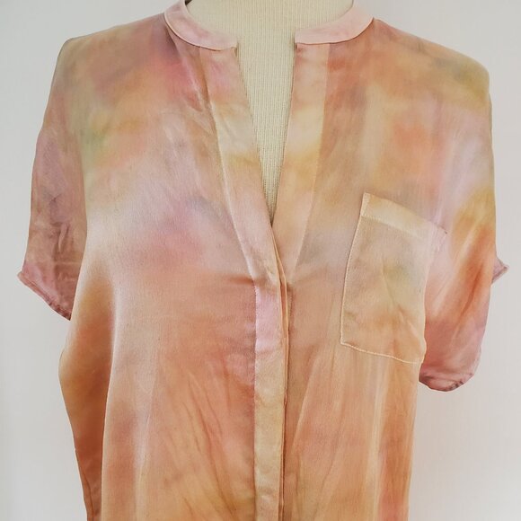 NEW Vince Silk button shortsleeve shirt beige blue pink green ivory painted M L