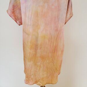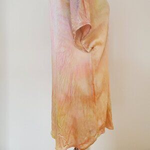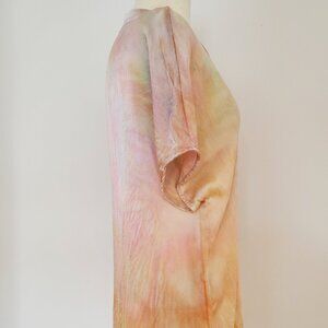 This shirt is one of a kind and Hand painted by an artist in Pastel green, gray, beige, Purple, tan ivory, yellow, orange, green and blues.