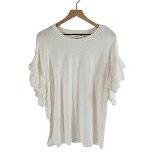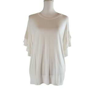 NEW!! Vine & Love Bell Ruffle Flutter Sleeve Blouse Top Off White Size M Flowy Cavender