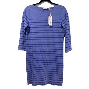 NEW Vineyard Vines Dress Women Small Marlin Blue Overdyed LS Stripe Preppy Beach