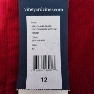 NEW Vineyard Vines red stretch cord breaker pant 12