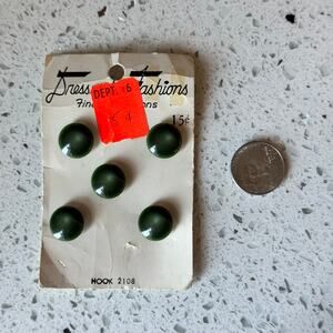 NEW Vintage 1950s Green Dress Fashions Buttons on Card Shank Round
