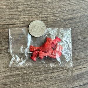 NEW Vintage 1990s Red Glitter Cardinal Shank Button Bird Animal 2 Sizes Set of 5