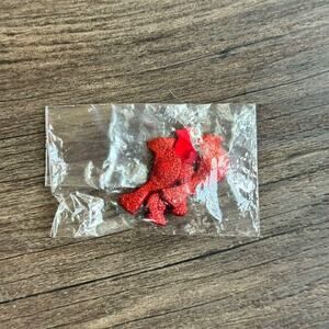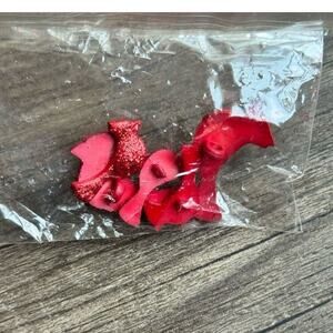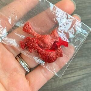 NEW 1990s Vintage Red Glitter Cardinal Shank Buttons Bird Animal 2 Sizes Set of 5