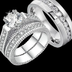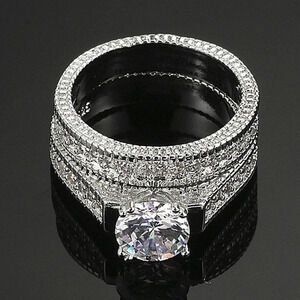 NEW Vintage 2 Ct Solitaire Pave Diamond Engagement Band Ring Set Sz 6