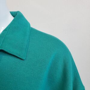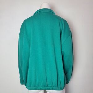 NWT deadstock vintage 80s Jan L. Sport (Jansport) turquoise green long-sleeved zip-up sweatshirt with snap collar, 2 snap pouch pockets, and elastic waistband.