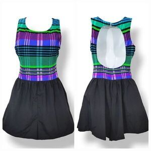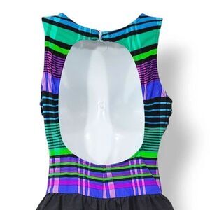 NEW Vintage 80s Talbots Striped Plaid Swim Romper with Attached Shorts Size 12
